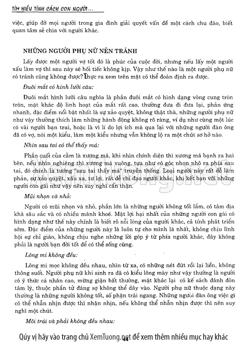 Sách "Tìm Hiểu Tính Cách Con Người Qua Khuôn Mặt" giới thiệu những kiến thức đã được tổng hợp qua kinh nghiệm của nghiều thế hệ. Các câu ca dao, tục ngữ nói về khuôn mặt của người xưa là những đánh giá tính cách tương ứng đều khá đúng với thực tế. Để đúc kết được những kiến thức này, nhiều lớp người đi trước đã trải qua, thậm chí phải trả giá bằng thực tiễn.