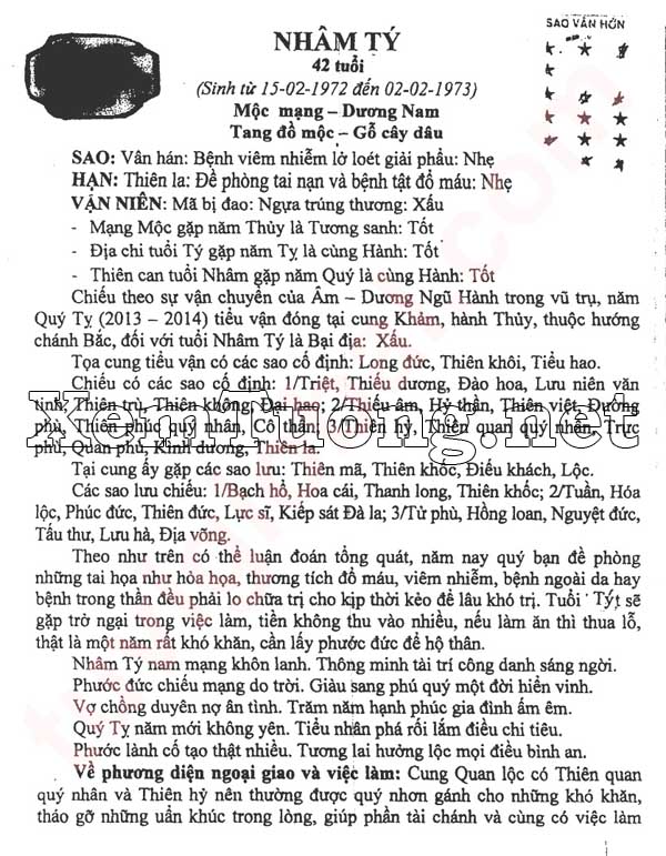 XEM TỬ VI HẠN VẬN TỐT XẤU NĂM QUÝ TỴ 2013 - 2014