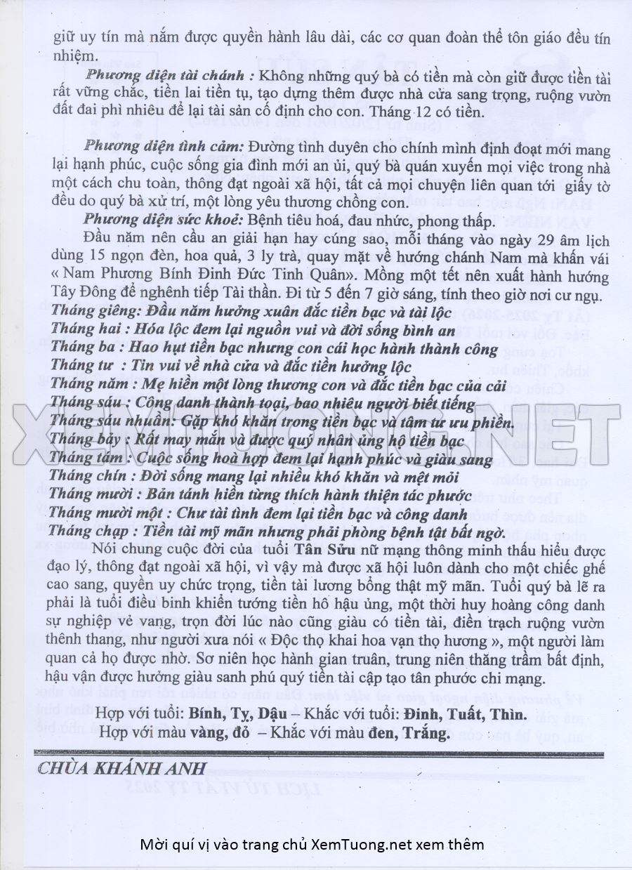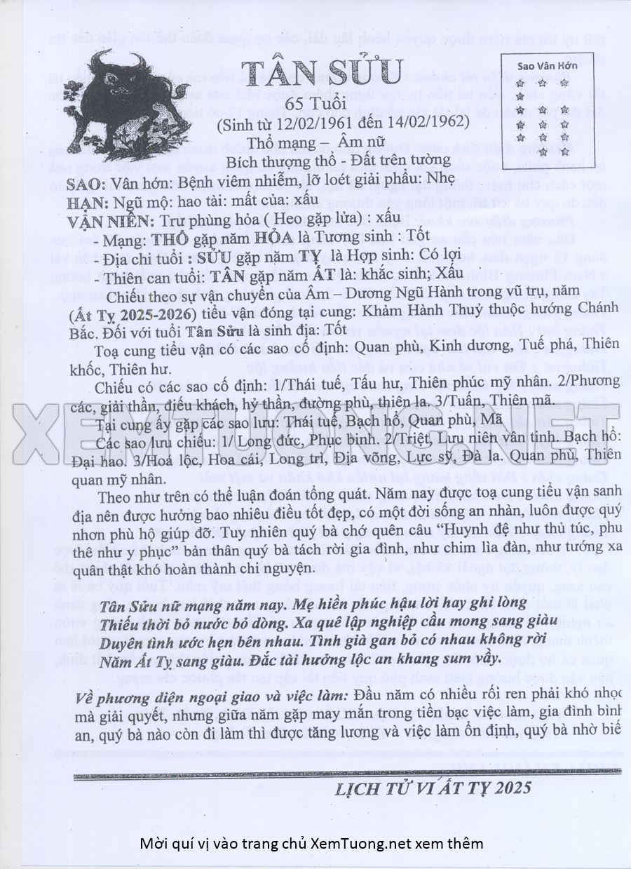 Tử Vi Năm Ất Tỵ 2025 mạng nữ TÂN SỬU