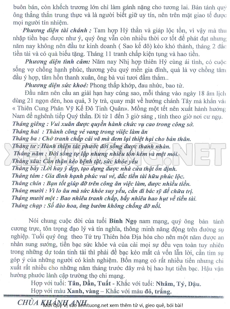 Tử Vi Năm Bính Ngọ 2026 mạng nam BÍNH NGỌ