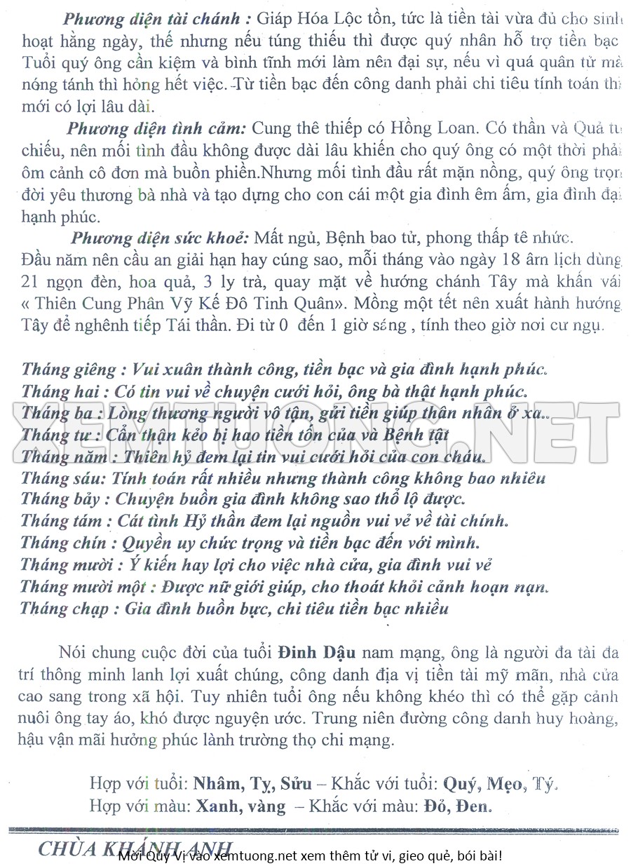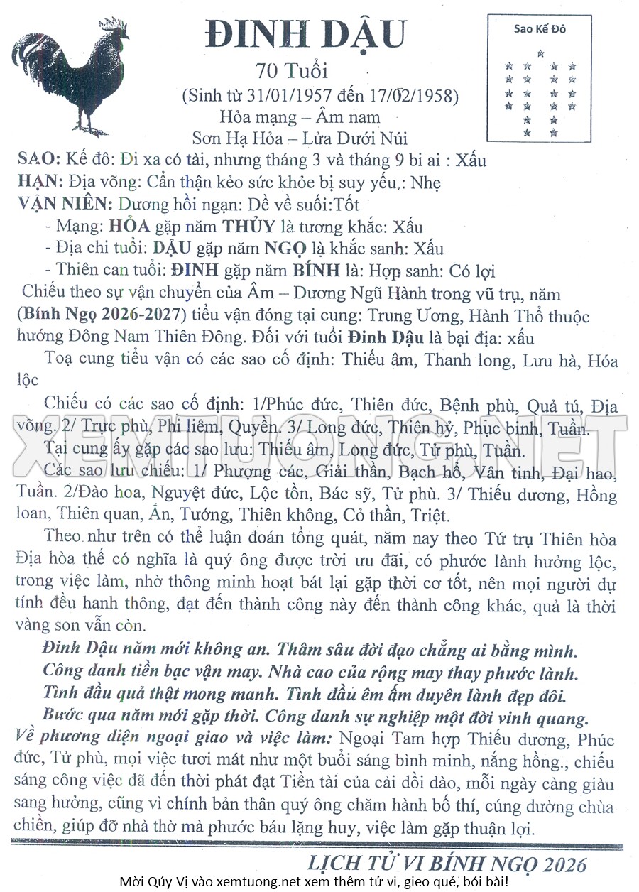 Tử Vi Năm Bính Ngọ 2026 mạng nam ĐINH DẬU