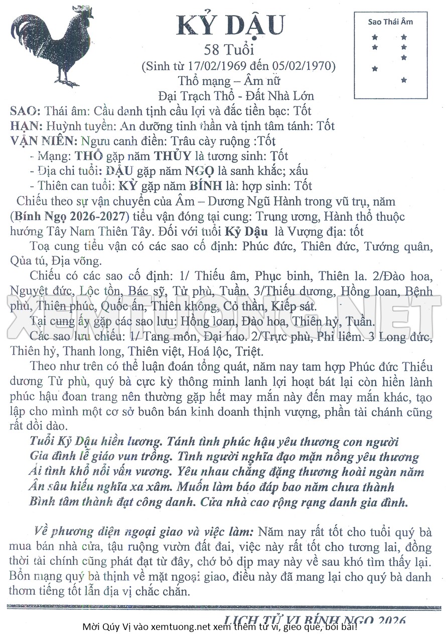 Tử Vi Năm Bính Ngọ 2026 mạng nữ KỶ DẬU