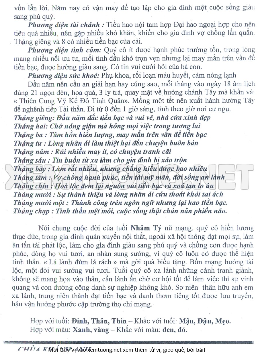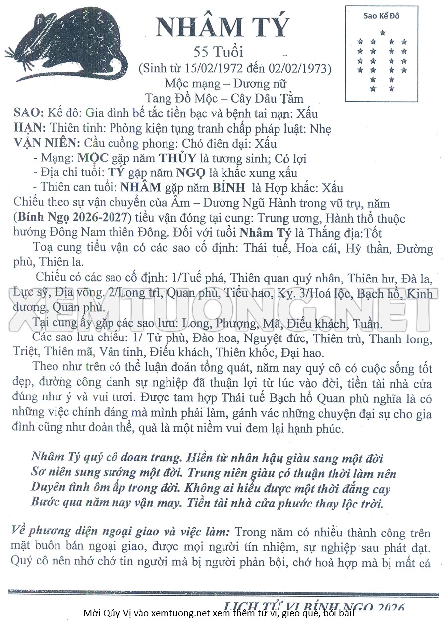 Tử Vi Năm Bính Ngọ 2026 mạng nữ NHÂM TÝ