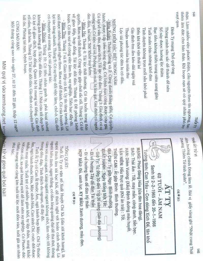 (Lưu ý: Thái Ất Tử Vi được chúng tôi scan từ sách, do đó mỗi tuổi sẽ có nhiều trang, quý vị xem xong hãy nhấn vào trang tiếp theo để xem hết phần tuổi muốn xem. Nếu quý vị xem bằng điện thoại thì hãy kéo qua lại để xem phần bị khuất.)